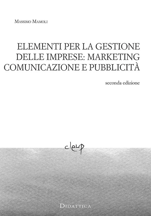 Questo manuale vuole mettere a disposizione degli studenti una “traccia” per seguire le lezioni classificate come SSD “Secs P08 e P10”. Il presente lavoro è suddiviso in quattro parti, la prima dedicata ad un approfondimento su alcuni temi di Marketing, in particolare il marketing interno, l’ampliamento del modello delle P’s ideato da McCarthy, nonché un aspetto prettamente operativo come la scelta del punto vendita. L’argomento della “Comunicazione” viene affrontato nella seconda parte, inizialmente considerando i modelli teorici tra i quali quelli di Lasswell, Shannon & Weaver, Osgood & Schramm e Jakobson, per poi proseguire con temi a maggiore contenuto pratico. Nello specifico si è analizzata la Comunicazione Aziendale, la costruzione di una politica di Comunicazione Totale e l’importanza dell’Immagine; qui si è fatto ricorso al “differenziale semantico” di Osgood, applicato a quattro diversi settori economici.