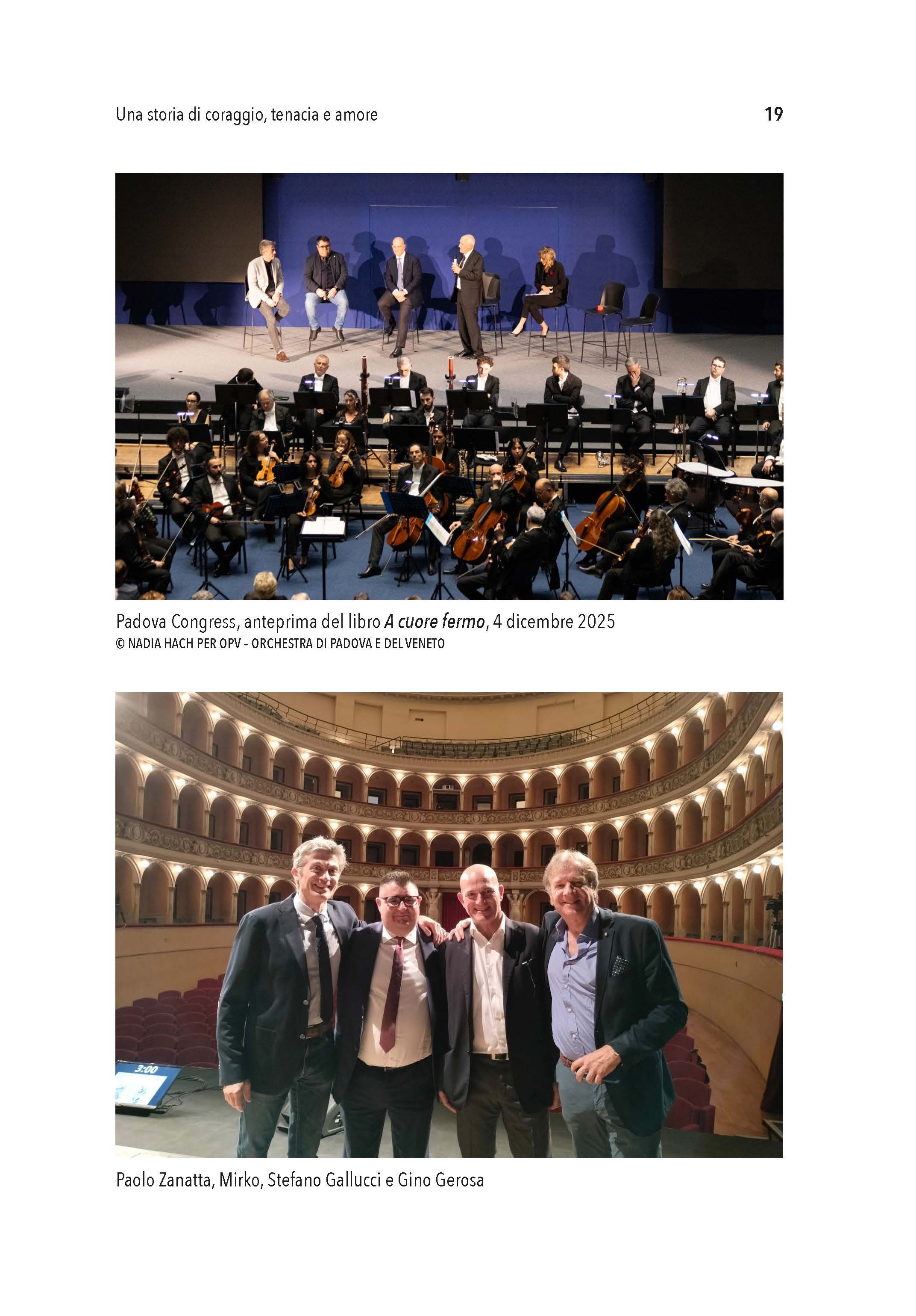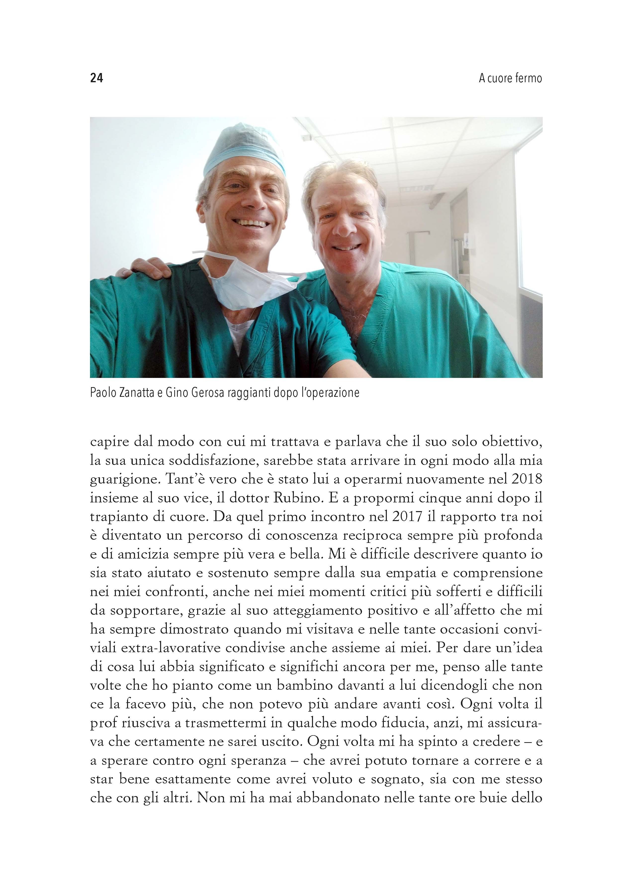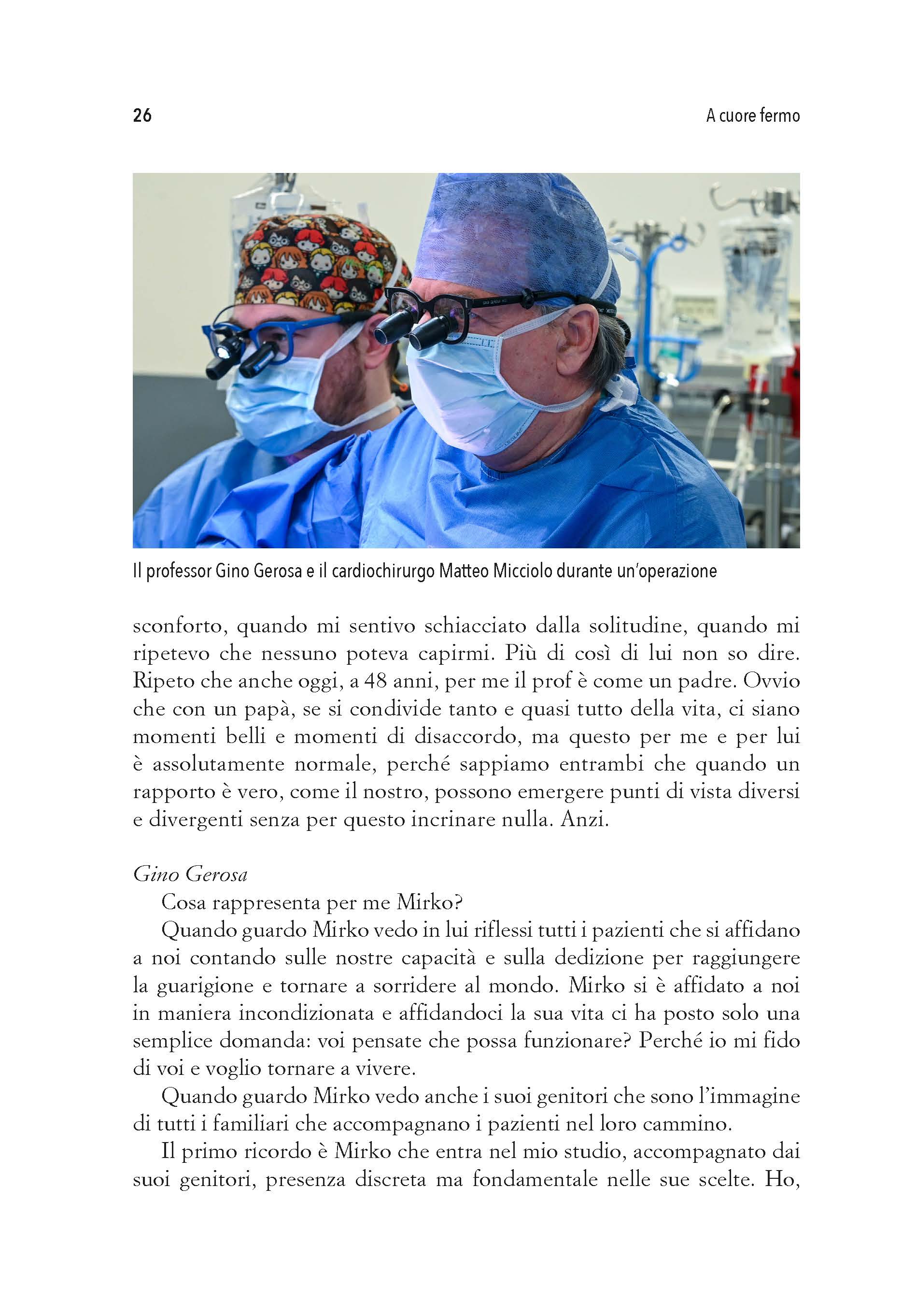 A cuore fermo è un racconto corale. In queste pagine s’intrecciano voci diverse, ciascuna delle quali, pur senza aver ascoltato le altre, concorre sorprendentemente alla riuscita dello stesso concerto. Questo coro ha la fortuna di avere due direttori, Paolo Zanatta e Gino Gerosa. La loro voce, alternata a quella di Mirko Bernardinello e alle tante altre che completano il coro, sono la testimonianza di un legame con lui che va al di là del classico rapporto medico-paziente. Non a caso Mirko li chiama “la mia seconda famiglia”.